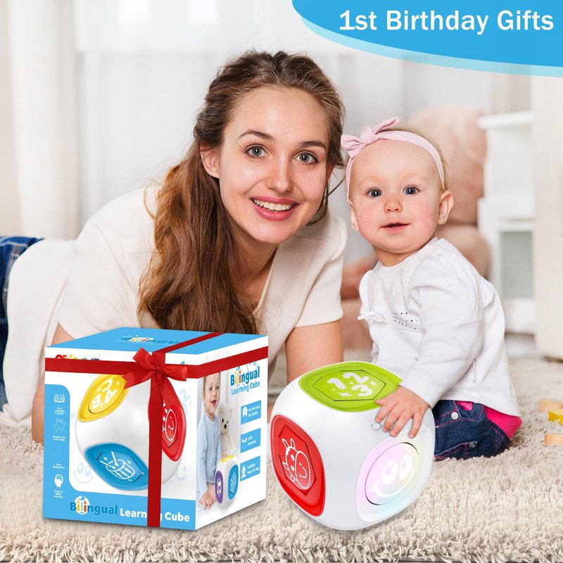 Toys for 1+ Year Old Boy Girl, Bilingual Learning Cube with Music & Light, Early Learning Musical Baby Toys 12-18 Month, Educational Toy for Toddler Age 1-2, Christmas Birthday Gifts for Kids Aged 1+