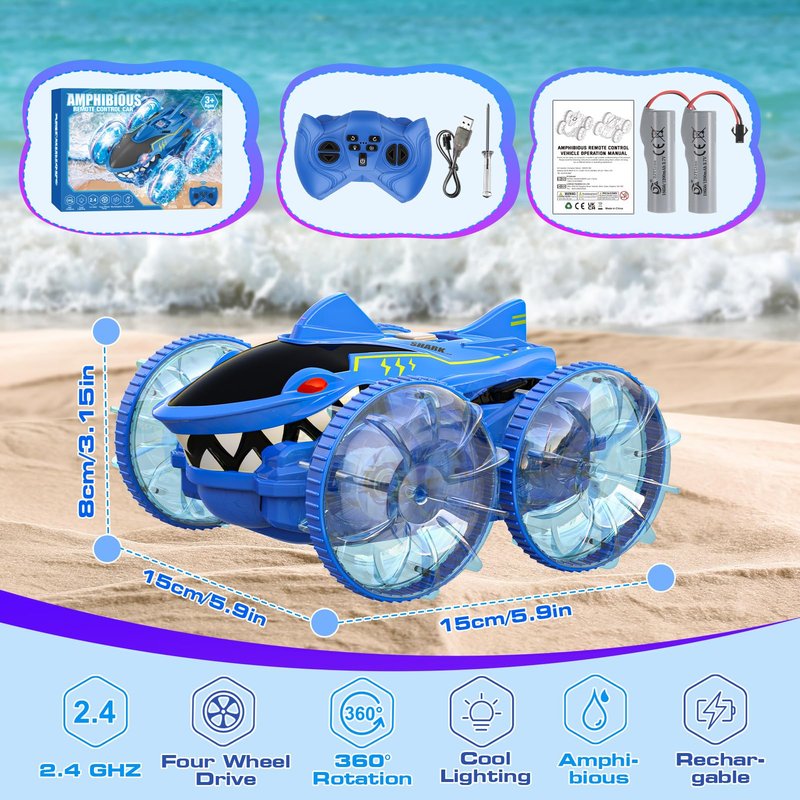 - 【Amphibious RC Car】This boys toys remote control car is not only on land but also in water. It can seamlessly transition from land to water, allowing kids to have fun, offering an unparalleled experience for adventurous kids. Its waterproof construction ensures that it can operate smoothly in various environments.