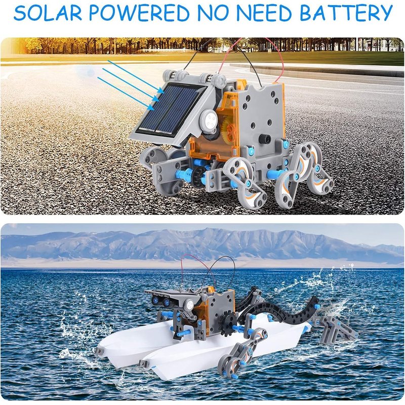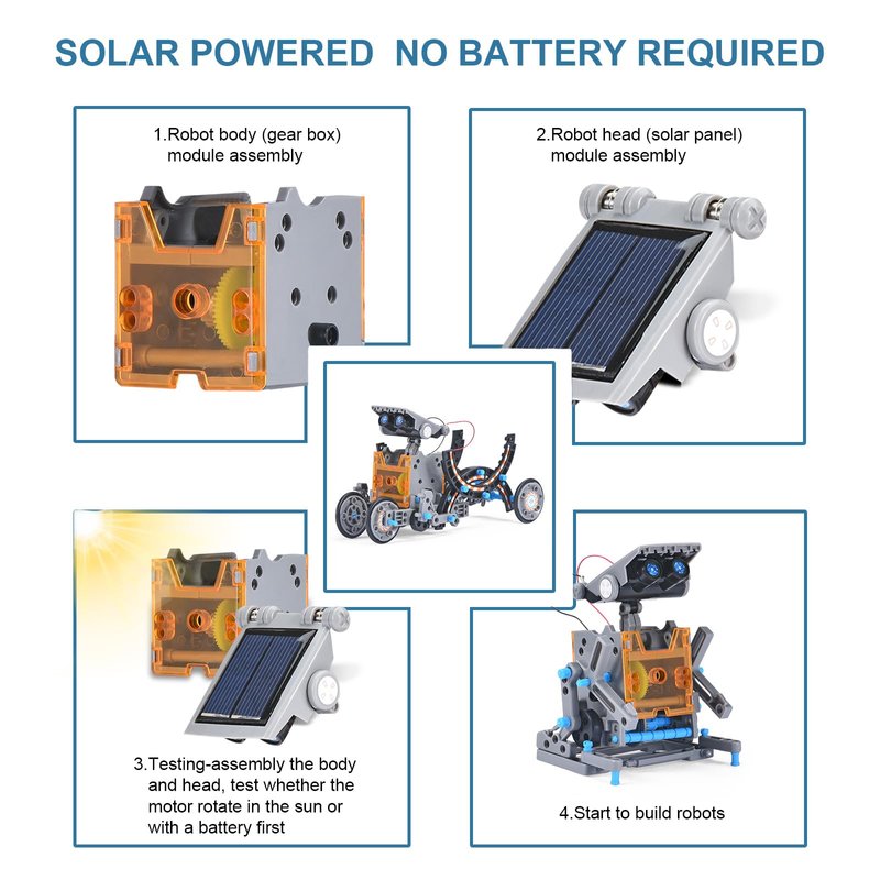 - Create Your Own Solar Robot - The solar toy sets come with step-by-step instructions, allowing children to DIY their own robots. While it might present a small challenge for 8-year-olds, the detailed assembly steps and part numbers in the instructions make it achievable. As they see their solar robots walking on land, children over 8 years old will gain confidence in their abilities, and for 12, it offers just the right amount of excitement and engagement.