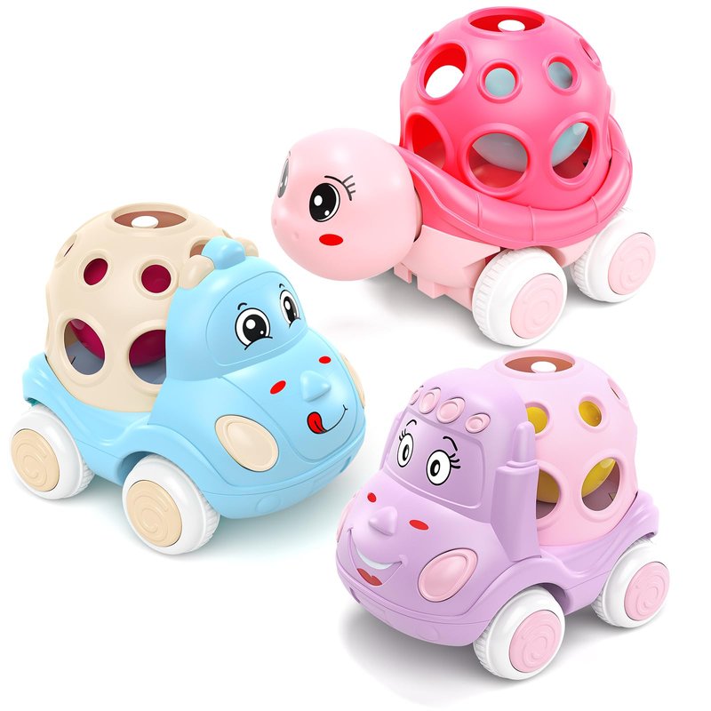 - BABY RATTLE TOYS FOR INFANT GIRLS: The top of each toy car is a soft and flexible rattle with finger holes, making it easy for babies to grasp. Babies and toddlers enjoy playing with these pink rattle toy cars