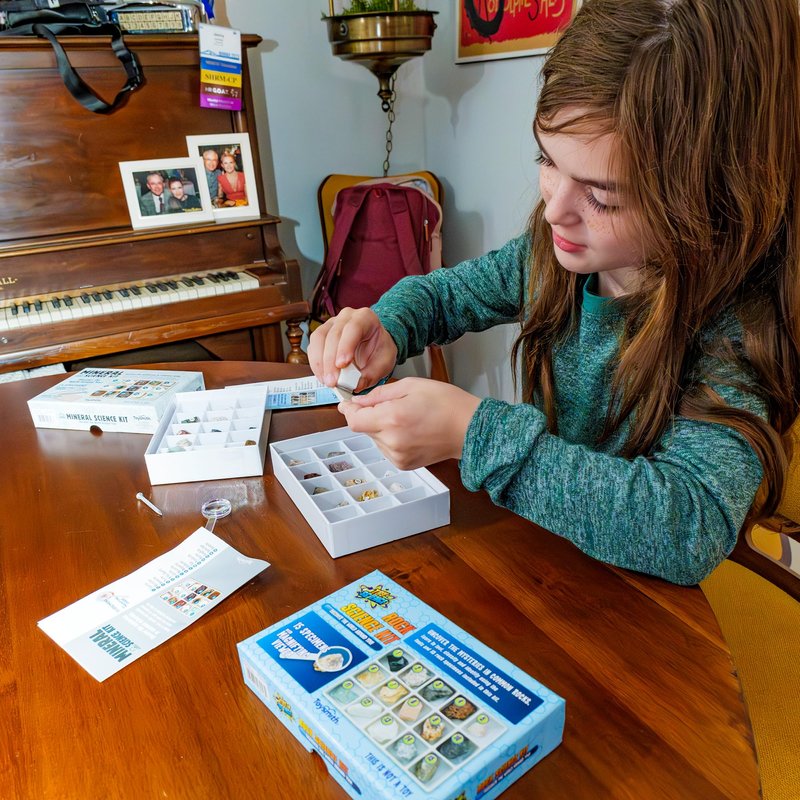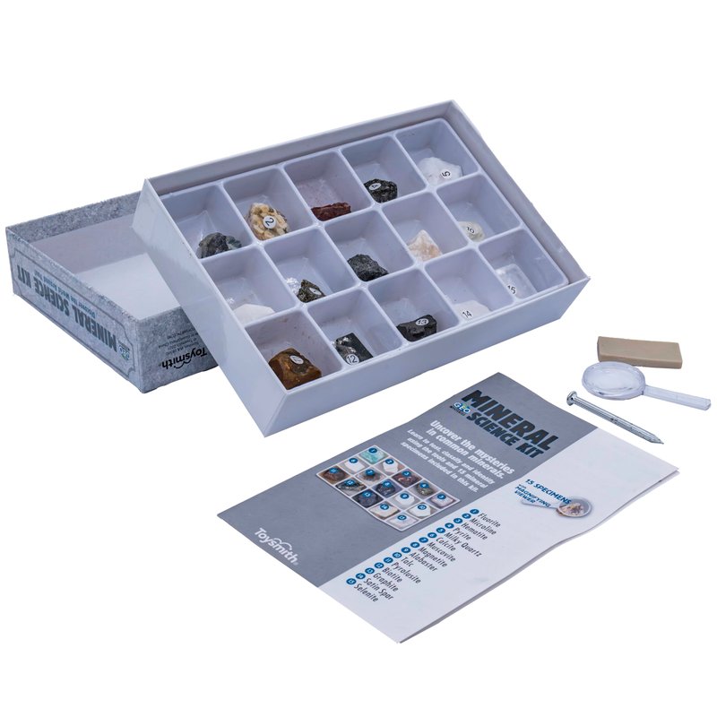 Dive into the rich diversity of the earth’s crust with 30 genuine rock and mineral specimens. This all-in-one kit is your child’s gateway to the world of geology, designed to spark curiosity and inspire a lifelong interest in the natural sciences. Comprehensive STEM Geology Kit STEM (Science, Technology, Engineering, and Mathematics) helps kids build important skills like critical thinking, problem-solving, and analysis. This kit isn’t just about having fun—it’s about learning in a way that’s both enjoyable and meaningful. It’s a great way to foster essential skills while keeping your child engaged and excited about the world around them. Educational & Engaging This kit turns learning into a hands-on adventure. Kids can test, classify, and identify various rocks and minerals using the included tools—a streak plate, a nail for hardness testing, and a magnifying viewer. With the detailed rock identification guide, kids get information about each rock’s unique properties. It’s a perfect blend of fun and education, offering a real, tactile experience with every specimen. Interactive Learning Tools The kit comes with a detailed identification guide, testing tools, and a magnifying viewer to ensure a fully immersive geological experience. Perfect for young scientists, this kit makes geology accessible and exciting, helping kids learn while they play. Organized & Ready-to-Go Keeping your collection organized is easy with the included durable storage trays. Each specimen has its place, making it simple for kids to store and access their rocks and minerals whenever they want to continue their exploration. Ideal for Aspiring Geologists This kit is designed to encourage curiosity and scientific discovery in kids aged 8 and up. It’s the perfect gift for young science enthusiasts and those who are fascinated by rocks, minerals, and the earth. Watch as your child delves into the exciting world of geology, discovering the natural wonders that lie beneath our feet.] Inspire a passion for science and nature with the Toysmith STEM Rock & Mineral Science Kit—an educational adventure that’s sure to captivate and educate young minds.