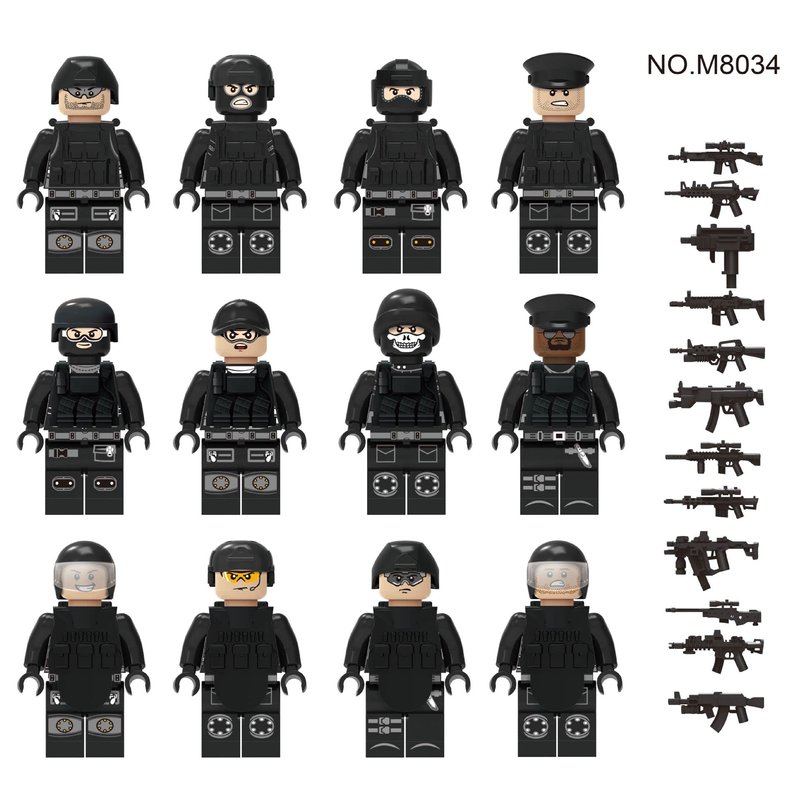 - Package: 22 pcs SWAT soldiers with weapons and personal equipment + SUV off-road vehicle. Packed in OPP bags