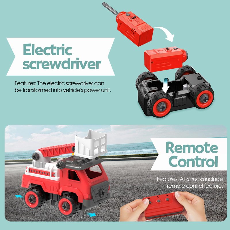 - Are you worried about your child's super destructive power? Don't stop them! Satisfy their valuable curiosity and desire to take things apart with detachable and assembleable toy cars. This will help develop your child's DIY skills and problem-solving abilities. Every child is an excellent inventor. The fire truck toy is suitable for 6+ boys and girls