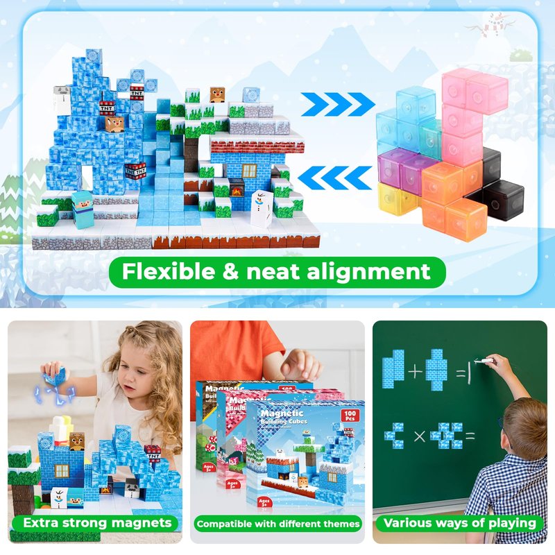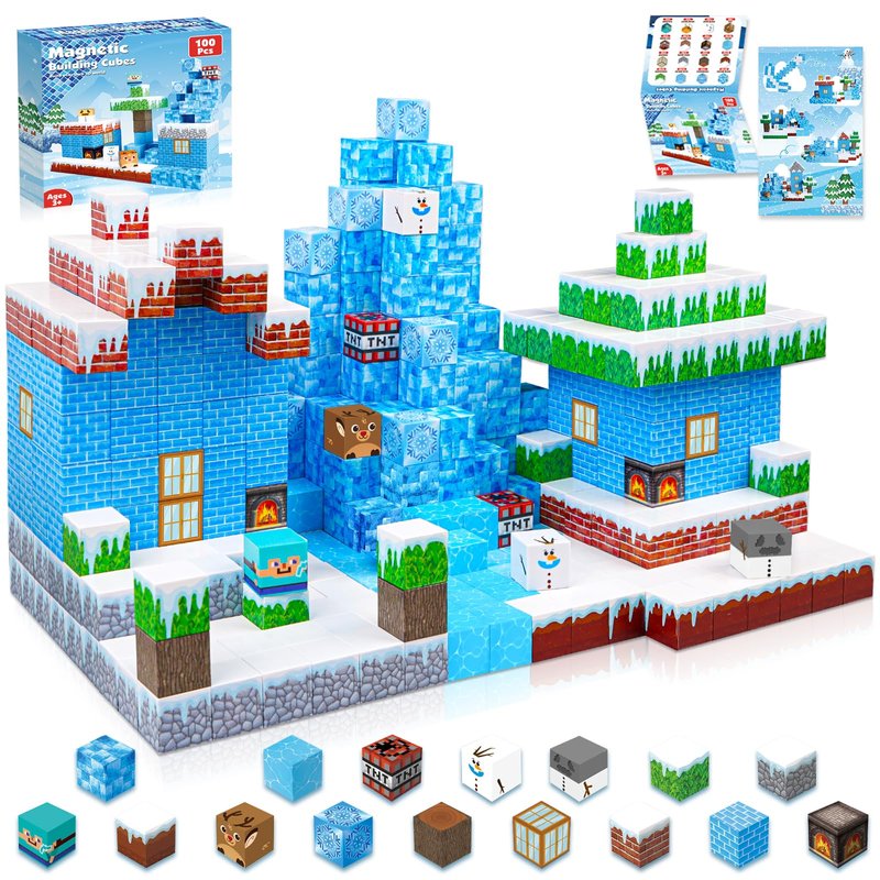 ToyUnited Magnetic Blocks - 100PCS Magnetic Building Blocks Glacier Castle, STEM Montessori Sensory Toys for Toddlers Kids Boys Girls Ages 3 4 5 6 7 8 9 10 Christmas Birthday Gifts