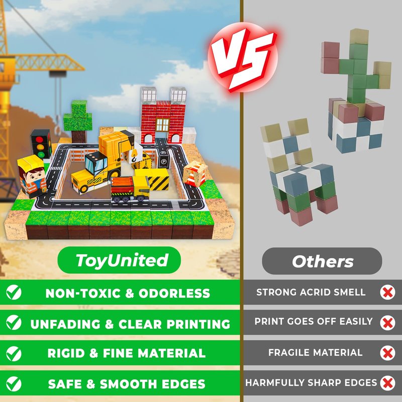 - 【Interactive & Entertaining】 The magnetic building blocks set includes an instruction manual paper and 14 different patterns blocks. These magnetic blocks for kids can build structures, and scenes with these magnetic toys. Each cube connects easily for unlimited stacking and construction variations.