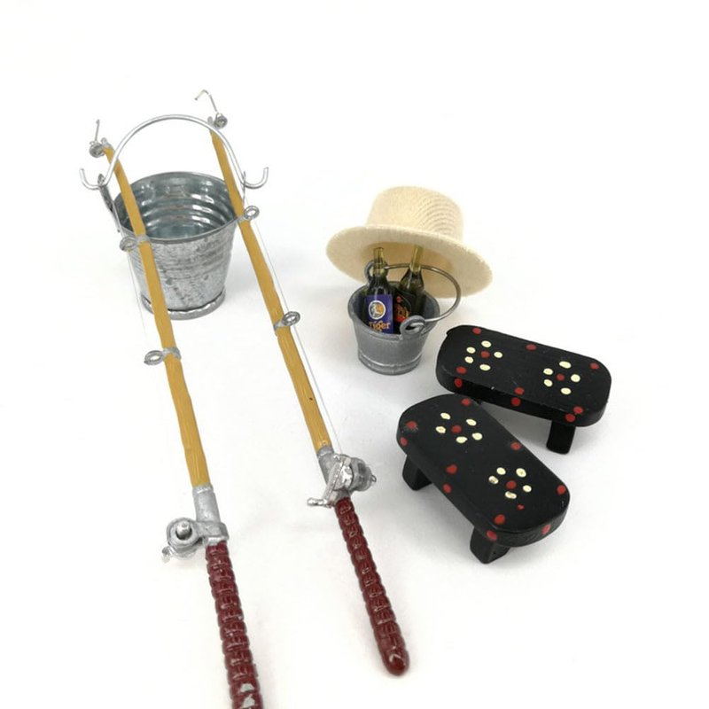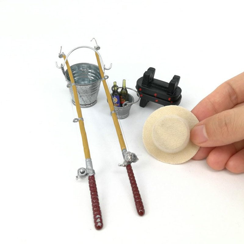 Toyvian 1 Set Simulation Fishing Tackle Ornaments Doll House Child Metal Toy Fisherman Small Plastic Toys