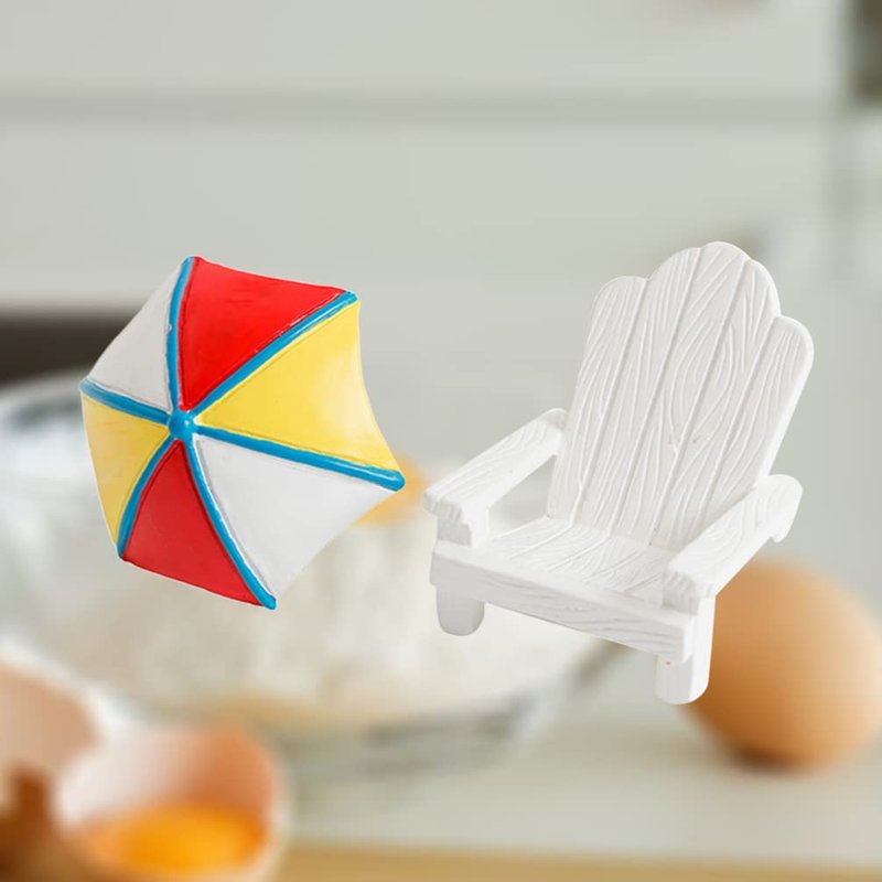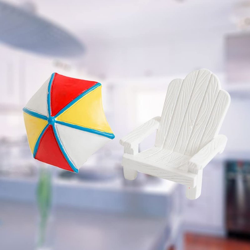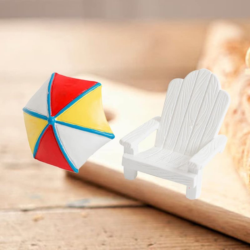 Toyvian 2pcs Miniature Chair Mini Beach Chair Sun Umbrella Cake Topper Micro Landscape Bonsai Dollhouse Decor for Aquarium Terrariums Decoration Cake Ornaments