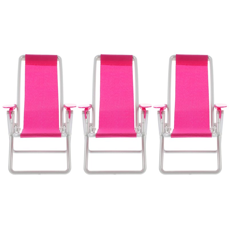 Toyvian 3Pcs Miniature Foldable Beach Chair Dollhouse Furniture Mini Deck Chair Longue Deck Chair Mini Furniture Accessories Accessories Rosy 3
