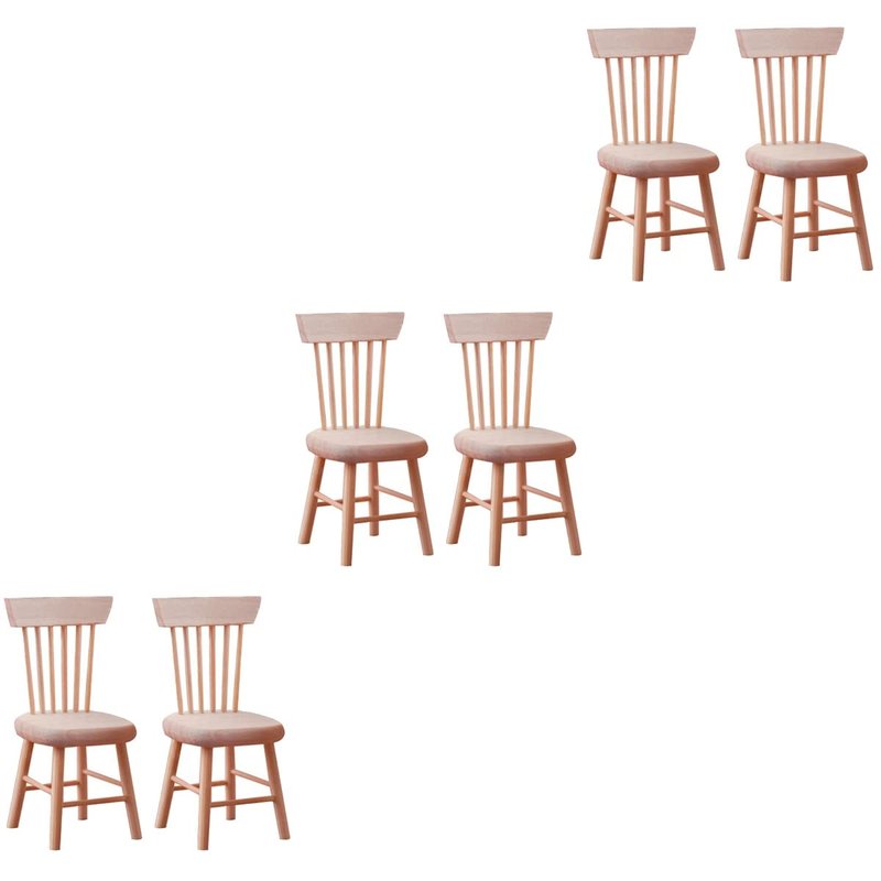 Toyvian 6 pcs 1: 12 Scale Dollhouse Chairs Mini Wood Chair Miniature Furniture Photograph Layout Props for Dollhouse Lanscape Garden