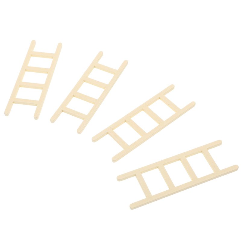 Toyvian Mini Wooden Step Ladder, Mini Wood Doll House Ladder, 1: 12 Miniature Ladder, DIY Craft Accessory, for Doll House Accessories, Fairy Furniture Ladder 4 Pieces