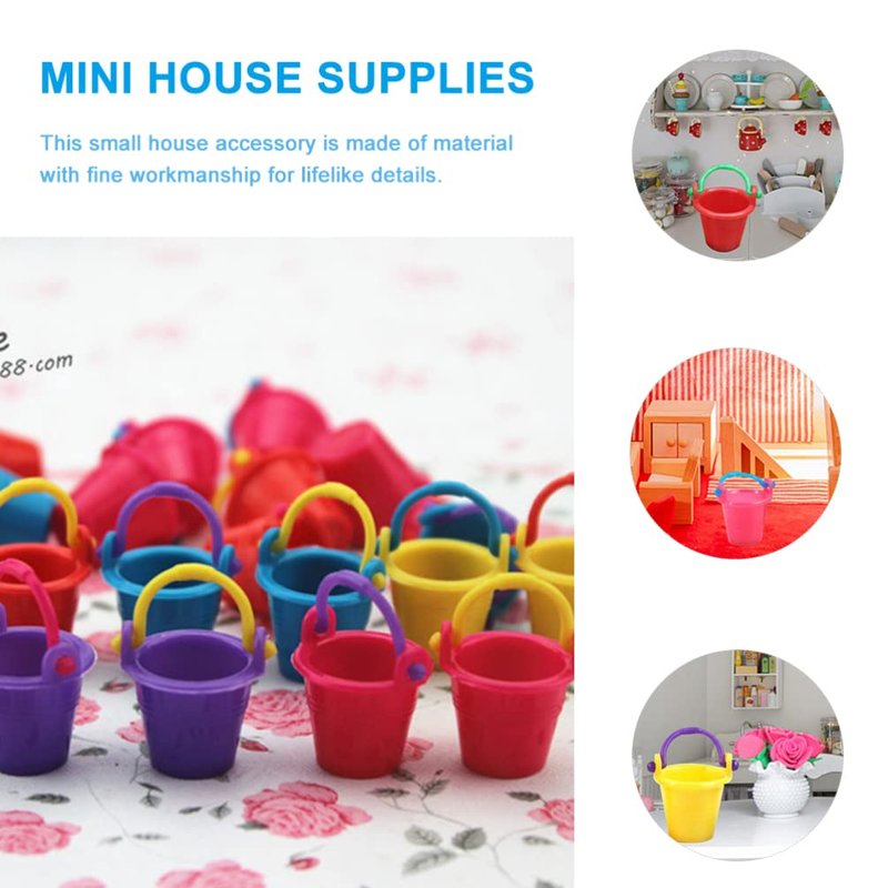 - MINIATURE BUCKETS- Made of plastic material and fine craftsmanship to make it look realistic. It can be used to decorate the garden and kitchen of the doll house, the beach, etc.