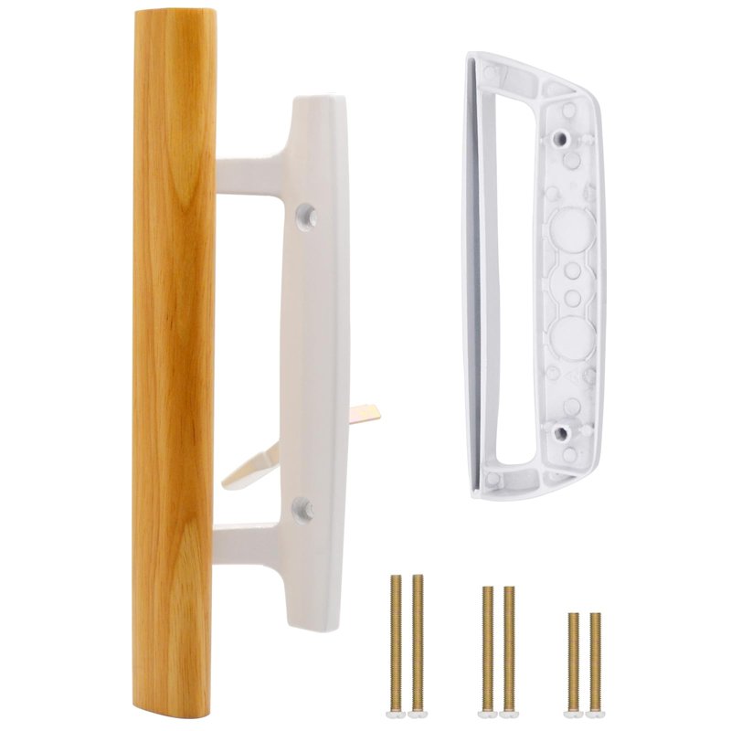 - 【Stylish and Sturdy Construction】: The sleek design of the exterior pull made of zinc alloy white painted diecast materials combined with the interior handle in light oak wood blends nicely with both modern and traditional styles, with a smooth surface and comfortable hand feeling. This patio door handle is durable and perfect choice for your glass sliding doors.