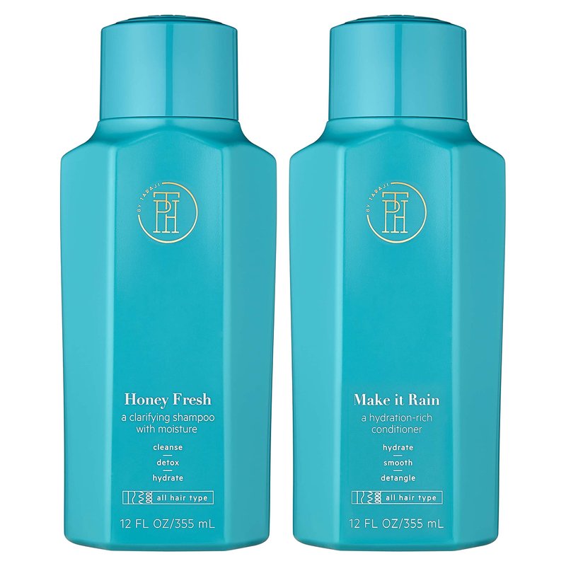 TPH BY TARAJI Cleanse Bundle | Make it Rain Hydrating Conditioner with Aloe & Honey and Honey Fresh Clarifying Shampoo for Buildup with Aloe, Honey | Sulfate Free, Color Safe, White