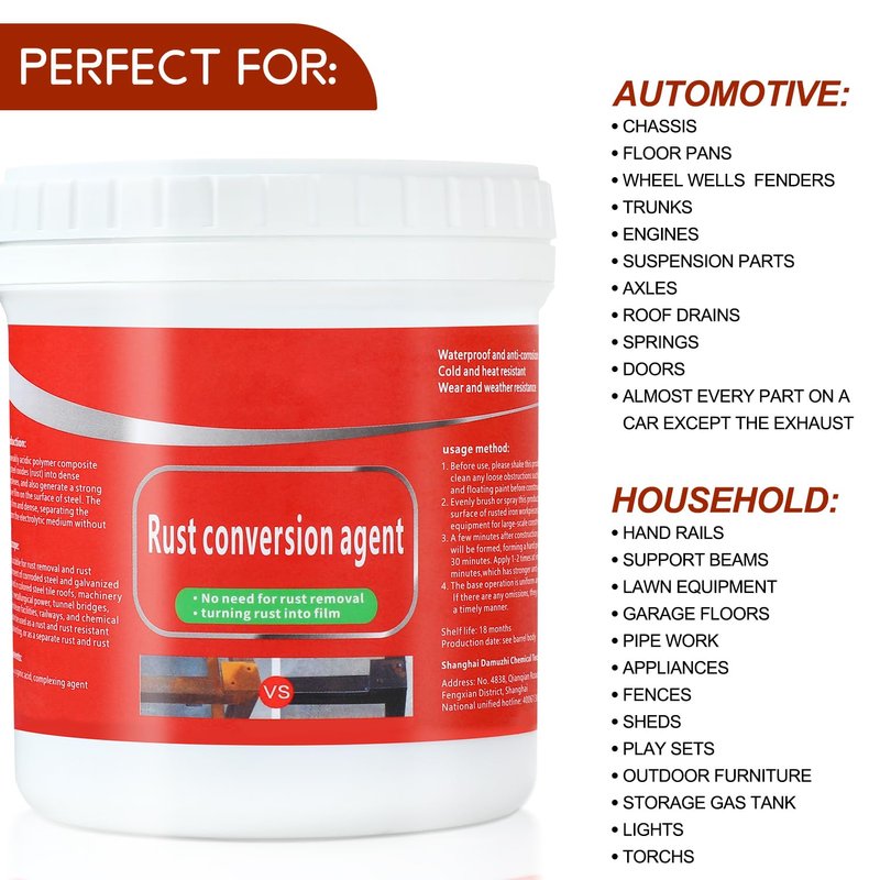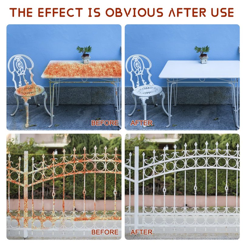 - [Versatile Metal Protection] Metal Rust Cleaner safeguards iron and metal surfaces on items like car chassis, trash cans, railings, and chains, restoring them to their original primer color and providing robust rust protection.