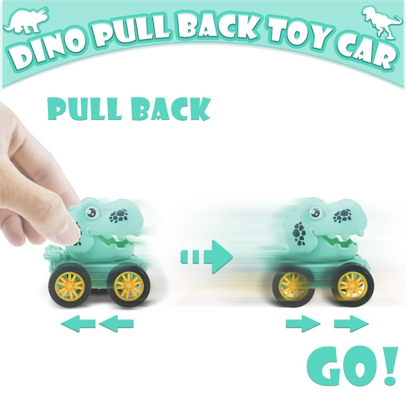 - 【DINOSAUR TOYS】contain of 16Pcs cute dinosaur Pull Back Cars ( T-rex and Triceratops), colors mixed packaging, The simple pull back and go dinosaur cars are easy for kids to play. Just pull it back and release,then it will go forward automatically, no battery needed. Recommended for boys and girls ages 3 and up.