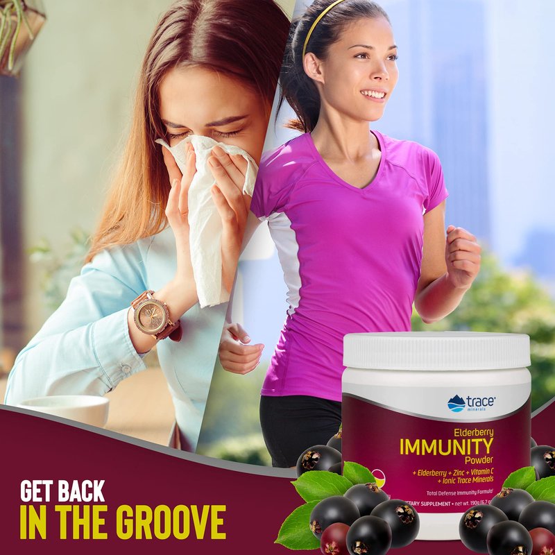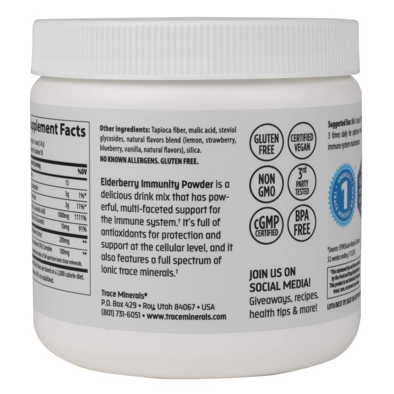 Trace Minerals | Elderberry Immunity Powder - Elderberry, Zinc, Vitamin C, Ionic Trace Minerals | Healthy Immune System | Non-GMO, Gluten Free, Certified Vegan | 6.7 oz
