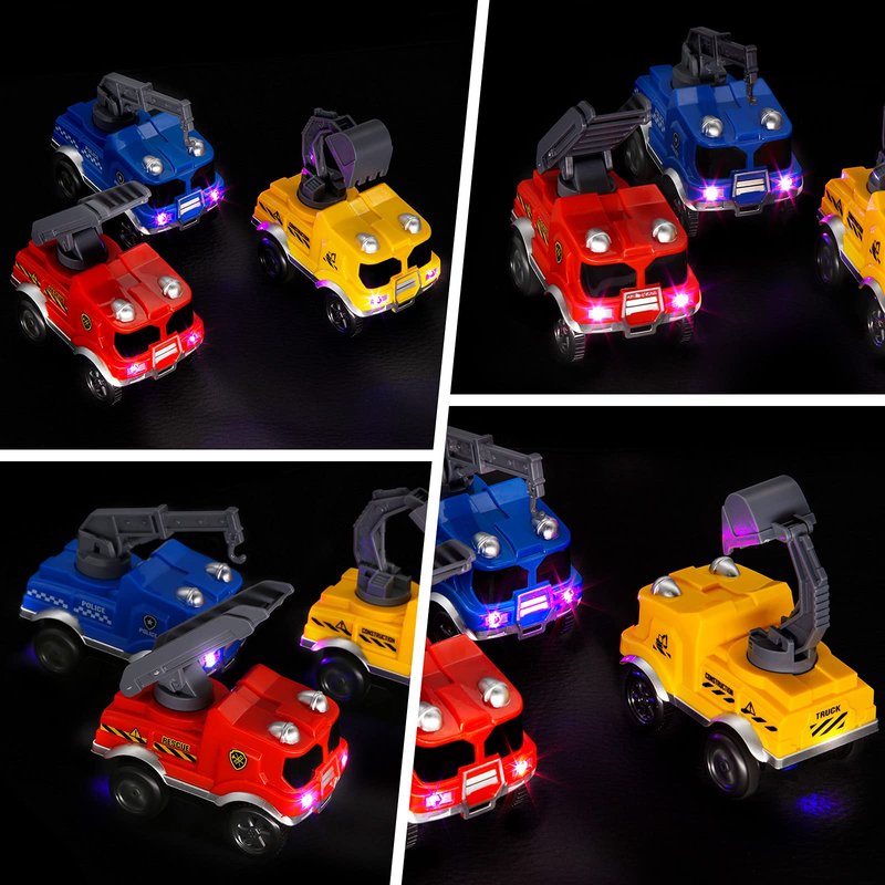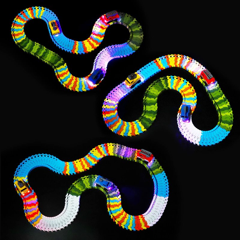 - 【Best Glow Track Cars for Kids】 -Three different colour of light up track cars can attract kids attention and make them feel happy. Parents can interact with kids by choosing one of the cars, and act as a driver of three different functions. It can not only be enhanced family relationships, but also educated children about traffic safety by these track cars.