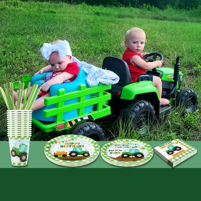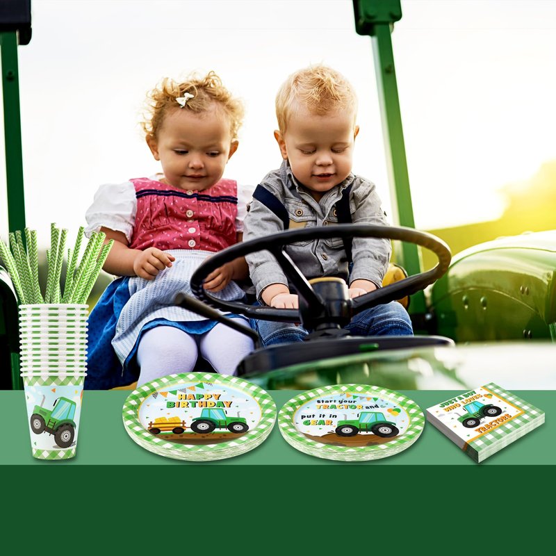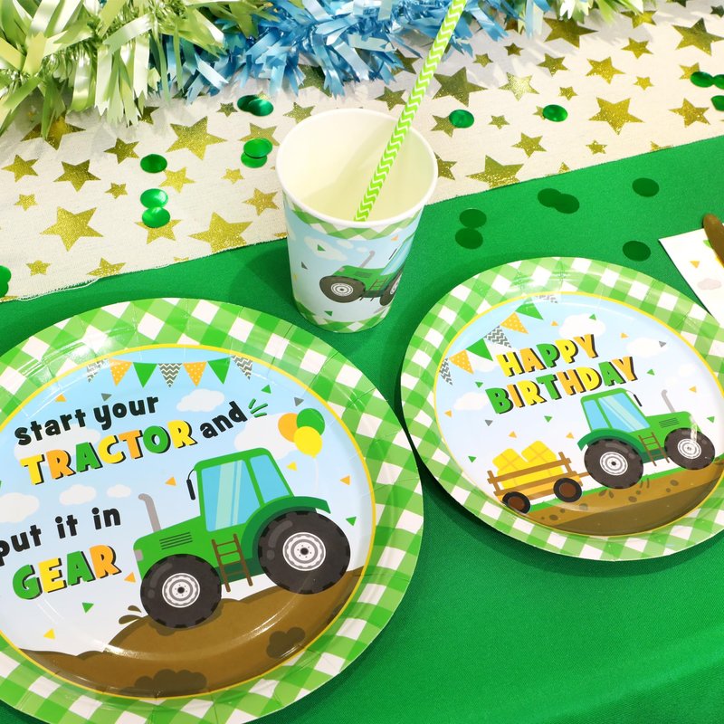 - 【Serves 24 Guests】: The tractor-themed dinnerware set includes 24 large 9" dinner plates, 24 7" dessert plates, 24 sturdy 9oz cups, 24 3-layer napkins, and 24 paper straws. Perfect for serving 24 guests, it makes hosting a fun and hassle-free party easy.