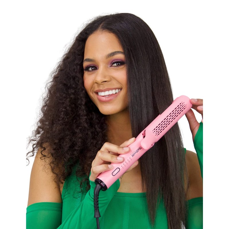 - PREVENTS DAMAGED HAIR - This 2-in-1 iron features built-in air vents that instantly cool your hair as you go to minimize damage, add shine, and lock your styling in place