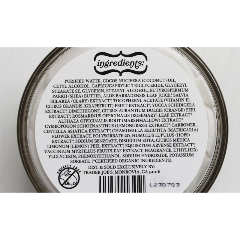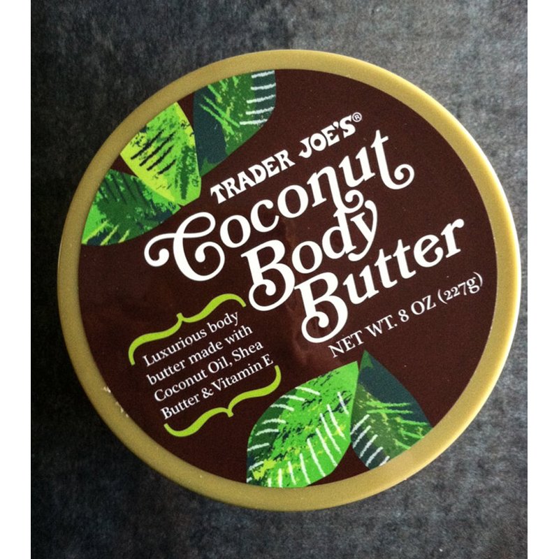 When we first introduced Trader Joe's Coconut Body Butter, way back in 2012, we thought it might be something we sold only during the cold weather months, and then took off our shelves during the spring and summer. Turns out, the body likes "butter" on the outside as much as on the inside (excuse the subjective interjection), and Coconut Body Butter has never (intentionally) left our shelves. This is a thick, smooth, buttery, body cream that's made with pure coconut oil and other skin-soothing ingredients, including aloe vera, shea butter and vitamin E. It absorbs into your skin very quickly, and doesn't leave it feeling oily. This particular blend of ingredients is beneficial for all skin types, so if you have eczema or dry skin, or you just like to keep your skin feeling soft and fresh, our Coconut Body Butter is nourishing, gentle, and soothing.