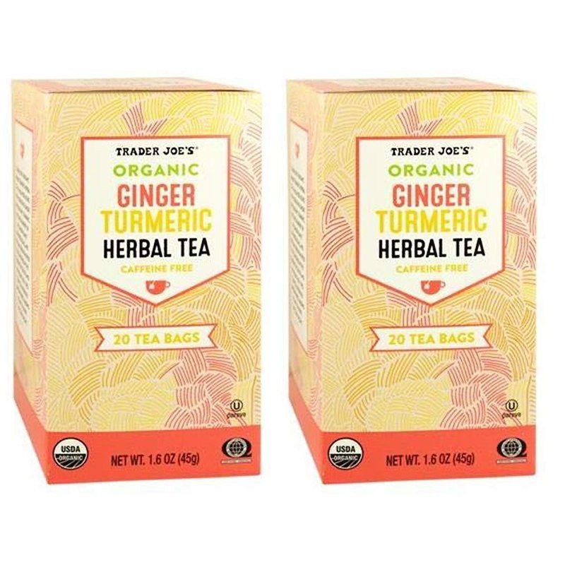 Trader Joes Organic Ginger Turmeric Herbal Tea 20 envelopes each - PACK OF 4