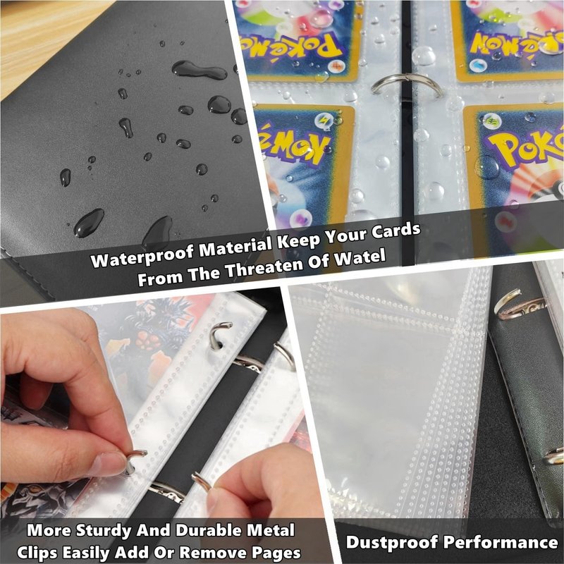 - {Compatible with Standard Sized Cards}: The trading card binder case is compatible with Pokemon Card,svarious standard-sized cards,Card Game, Yu-Gi-Oh, Star Wars X-Wing, Football cards, Baseball cards, Playing cards, etc. The transparent sleeves are made of clear Polyethylene, durable quality, acid-free, waterproof, super sturdy that won't get cards bend up, protect your card from fading and stain.
