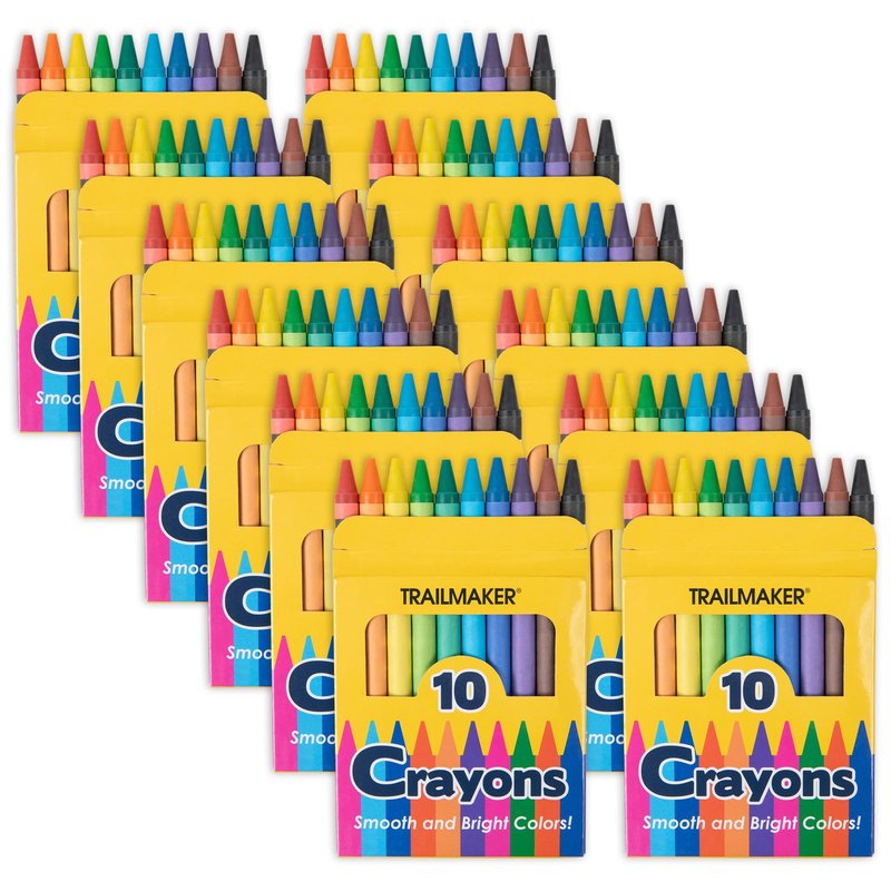 - CRAYON PACK: 10 in a box, 12 boxes in total. Perfect for camp, daycares, preschools, elementary school, and kindergarten