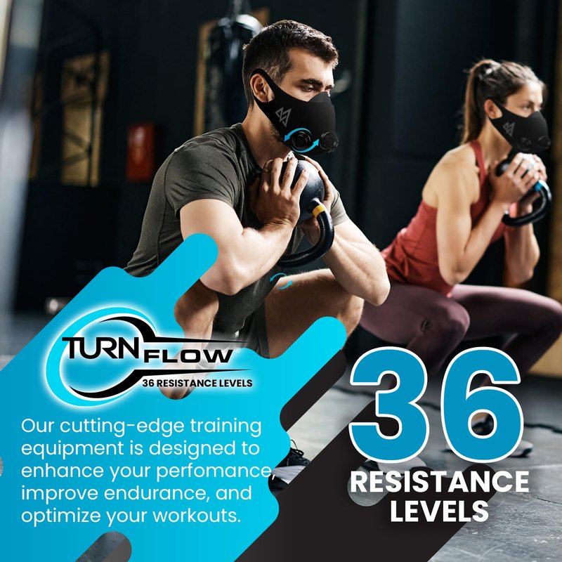 Training Mask Turn Flow's industry leading 21 level (36 combination) multi-level resistance loads the respiratory muscles by adding friction to inhaled air through its patented flux valve system. Increasing your inhalation load while training is like lifting weights for your breathing muscles. More respiratory power and stronger breathing muscles will supercharge your stamina and endurance. Training Mask Turn Flow's multi-patented flux valve technology offers 21 levels of resistance which allows you to work on breathing power, inspiratory muscle strength, and breathing technique. The lightweight and comfortable design of the Training Mask makes it a perfect addition to most forms of exercise from strength workouts to cardiovascular training.