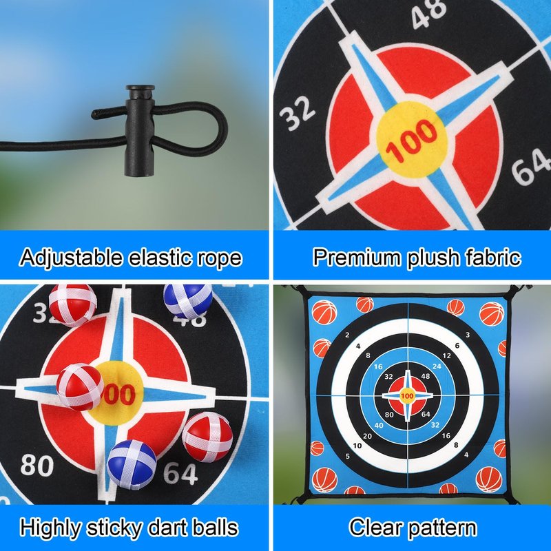 - Product Material: This dart board is made of plush fabric, which is soft and long-lasting. The sticky balls are made of plastic and can stick firmly to the dart board. You don't have to worry about your children losing the ball.