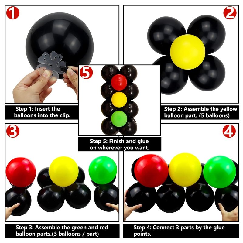 Besides, this package includes 3 balloon flower clips that allow you to use balloons to make a traffic light, which would be an interesting thing!