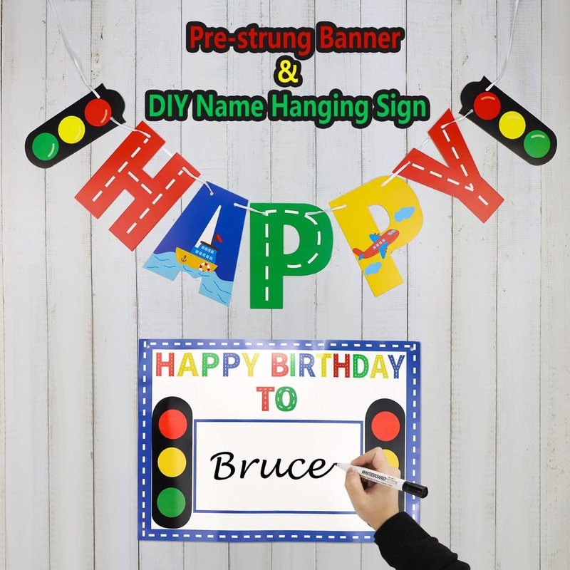 - Special Design: This party decorations package is specially designed for a transportation theme 3rd birthday party. The unique hanging sign allows you to DIY write your little one's name with a marker or pen, combined with the large number 3 and traffic light honeycomb centerpiece and number 3 foil balloons, making your kid's party very meaningful and unforgettable.