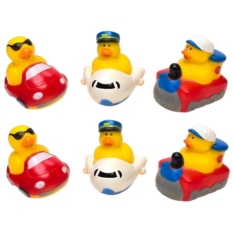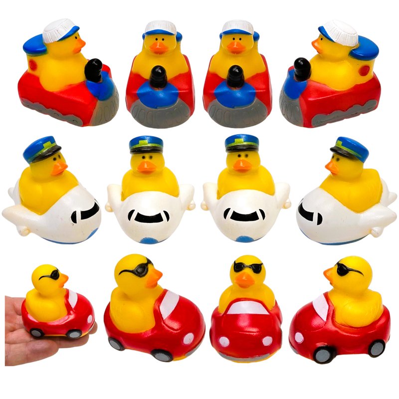 - Make bath time and playtime more fun with the Transportation Rubber Duckies - 12 Pack. These adorable rubber duckies come in a variety of transportation-themed designs, including a pilot on a plane, a captain in a boat, and a driver/chauffeur in a car.๐งจ๐งจ๐งจ