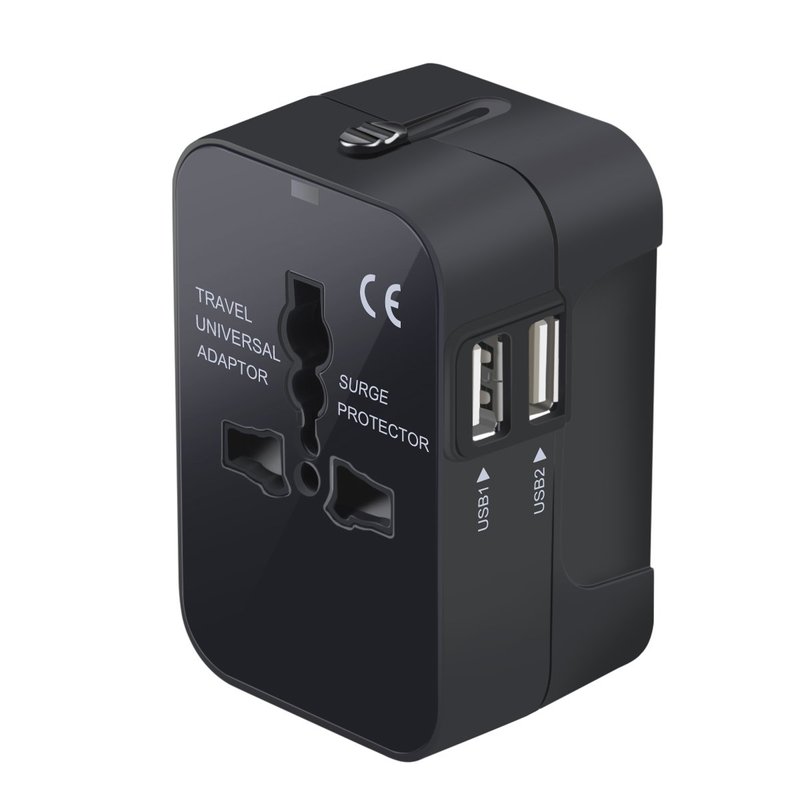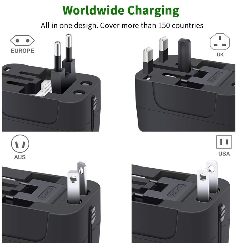 Travel Adapter, Worldwide All in One Universal Travel Adaptor Wall AC Power Plug Adapter Wall Charger with Dual USB Charging Ports for USA EU UK AUS Cell Phone Laptop Black