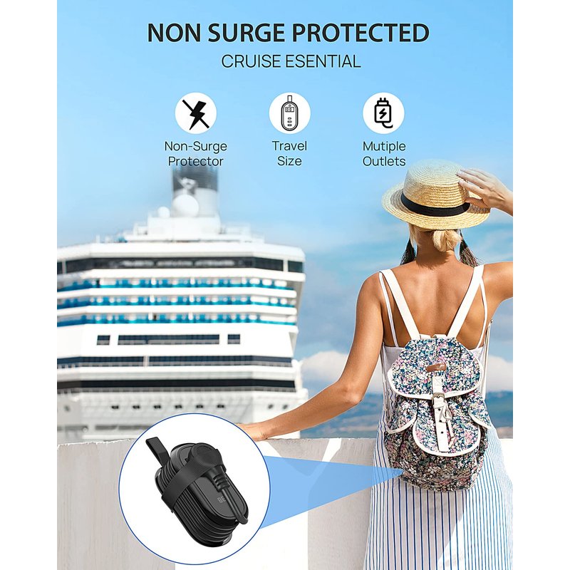 - 【 Cruise Must Haves】This Cruise necessities comes with No surge protection, makes it absolutely a Home and Travel must haves. Extension cord can be skillfully wound around the equipment and inserted into the AC outlets for convenient storage.The silicone handle and silicone straps are designed to facilitate travel and do not take up too much space.