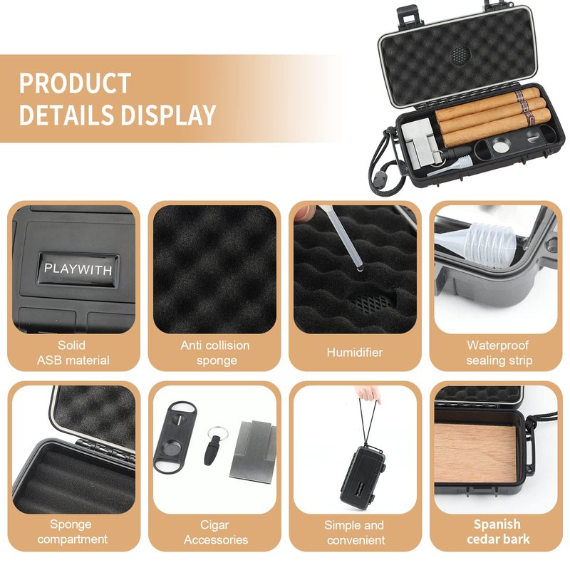 - ABUNDANT CIGAR ACCESSORIES, 1cigar Cutter,1cigar Stand, 1 Cigar Puncher mobile And Great For Travel With A String Handle Attached For When You’re On The Go.Travel cigar humidor comes with Spanish cedar paper to add fragrance.