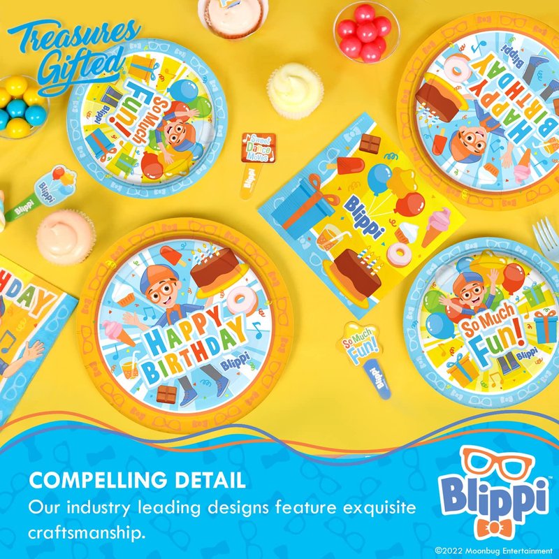 - PERFECT THEME PARTY: Want to make your child’s party stand out? Just call on Blippi to help! Make sure to check out all of our other Treasures Gifted amazing & authentic Blippi birthday decorations available on Amazon.