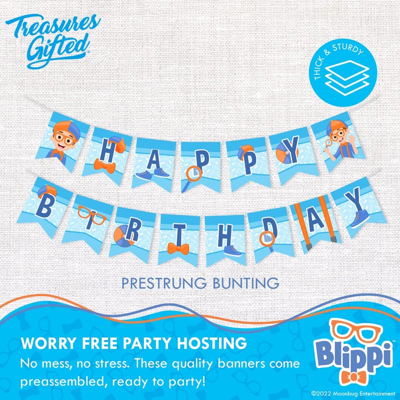 - PARTY WITH BLIPPI: Bring the fun & energy of your child's best friend Blippi to their birthday party with our Blippi banner. This birthday banner makes it easy to quickly set up a Blippi-themed celebration for your child’s special day!