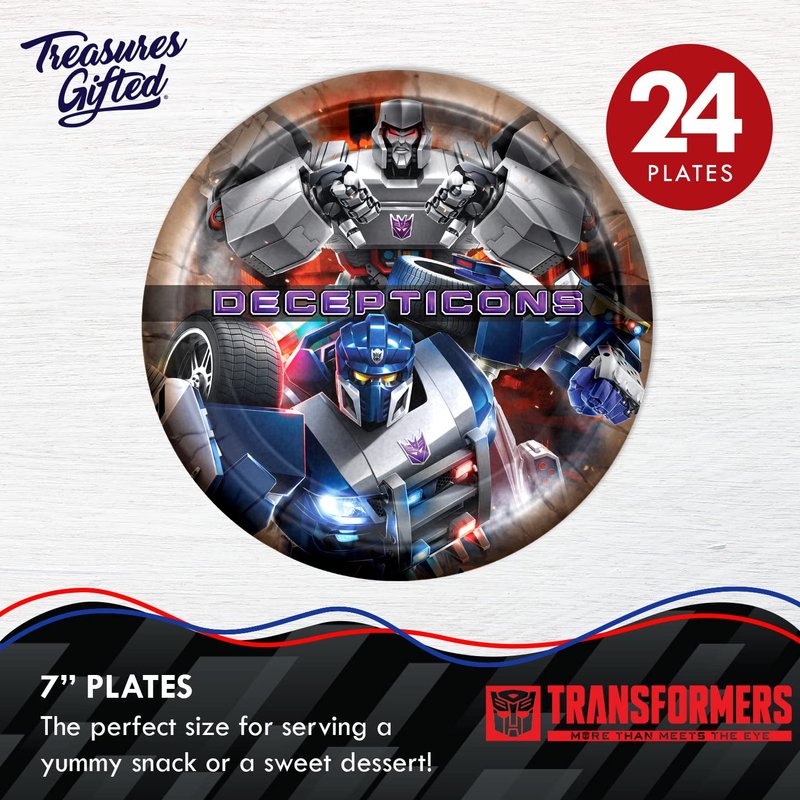 Treasures Gifted Officially Licensed Transformers Plates 24ct - 7in Transformers Party Plates Decepticons - Transformers Party Decorations - Transformers Birthday Party Supplies