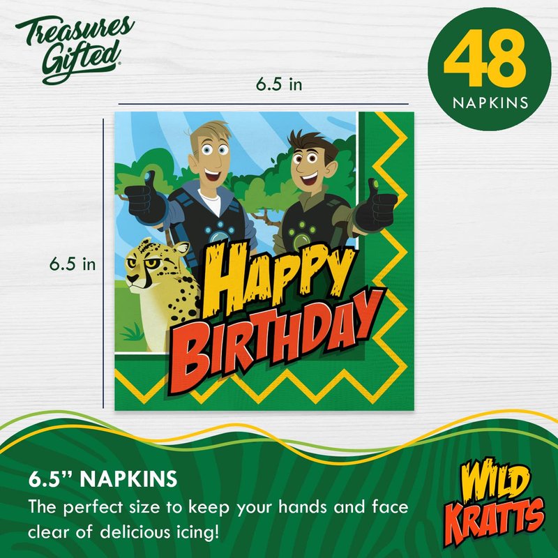 Treasures Gifted Officially Licensed Wild Kratts Birthday Party Napkins - Pack of 48 Wild Kratts Napkins - Wild Kratts Party Supplies - Wild Kratts Birthday Party Supplies - Wild Kratts Decorations