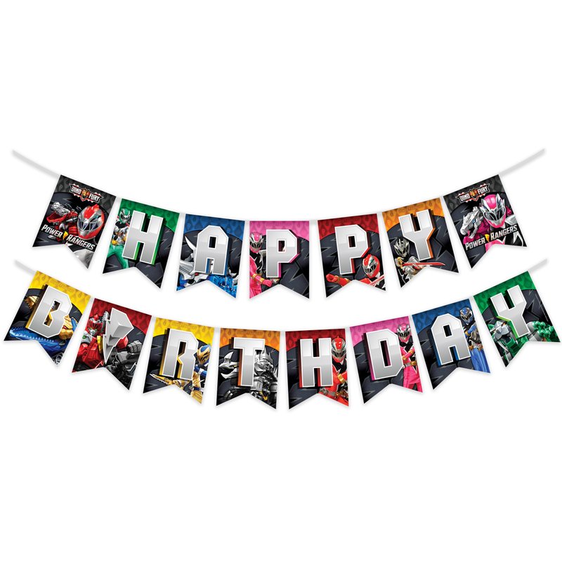- Our Power Rangers birthday decorations include (1) Power Rangers party banner with (15) 6.4 x 8.4 inch panels. This easy to hang, pre-strung Power Rangers birthday banner is sure to make a great addition to your Power Rangers birthday party!