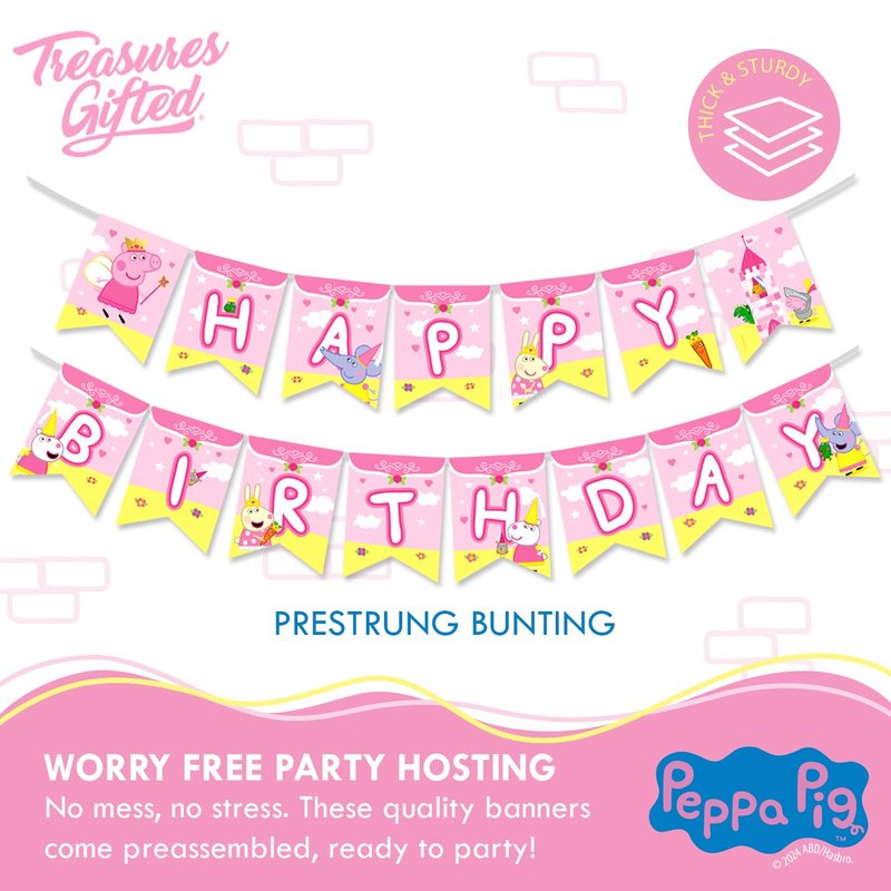 Treasures Gifted Princess Peppa Pig Banner - Peppa Pig Birthday Banner - Officially Licensed Peppa Pig Party Decorations - Peppa Pig Birthday Party Supplies - Peppa Pig Birthday Decorations