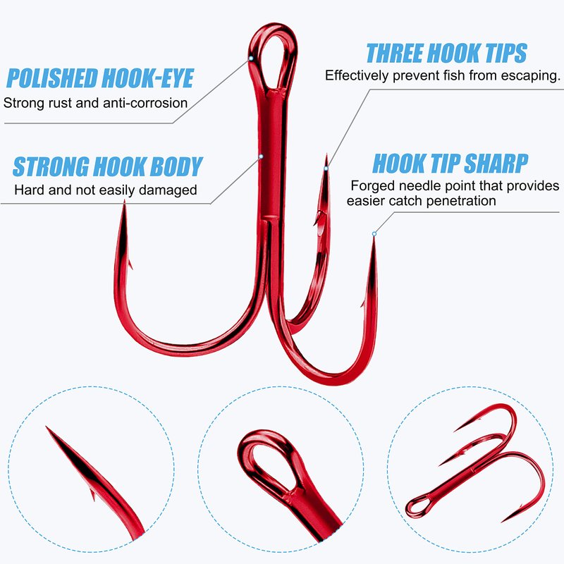 • Widely Used: These treble hooks are the great replacement for fish rigs and fish spinners, great for bass, trout, carp, eel and salmon species, ect.