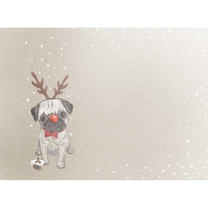 Tree-Free Greetings Holiday Greeting Cards, Pug Happy Christmas, Vintage Brown Recycled Paper, Boxed Note Card Set, 10-Pack (HB93301)