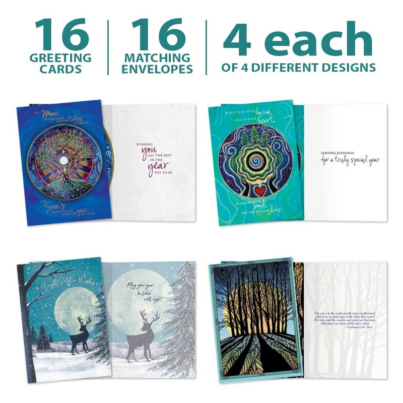 Tree-Free Greetings - Winter Solstice Greeting Cards - Artful Designs - 16 Cards + Matching Envelopes - Made in USA - 100% Recycled Paper - 5"x7" - Winter Solstice (GP54098)