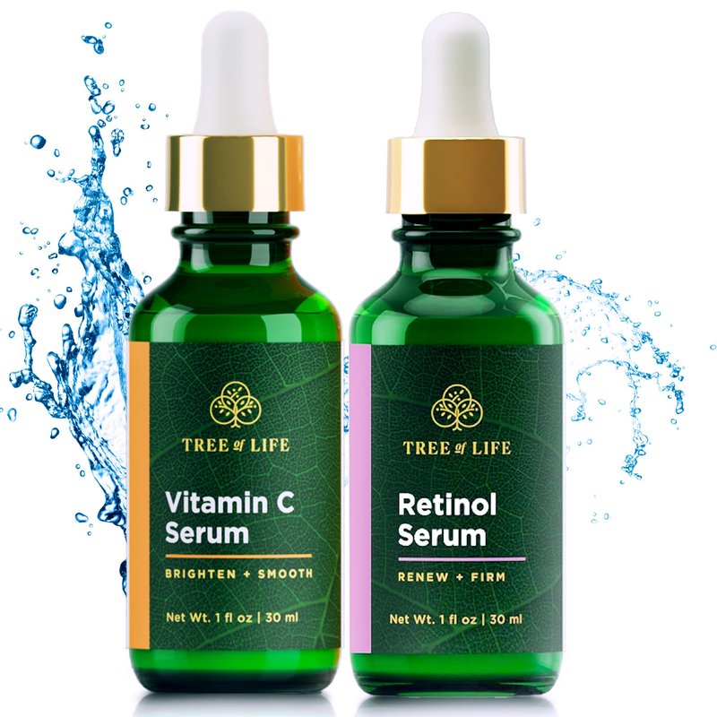 Tree of Life Facial Skin Care Set, Brightening, Firming, Hydrating, Dry Face, Dermatologist Tested - Vitamin C Serum (Brightens) + Retinol Serum (Smooths) - Skin Care Kit, 2 count of 1 Fl Oz