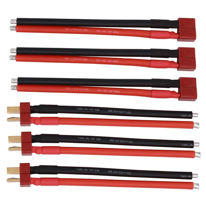 Treehobby 3 Pairs Deans T Plug Female and Male Connector RC Battery Balance Charge Cable Adapter Connectors Compatible with RC Airplane Quadcopter car Boat Lipo Battery ESC Charger(12AWG 10cm)