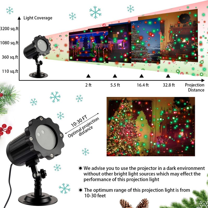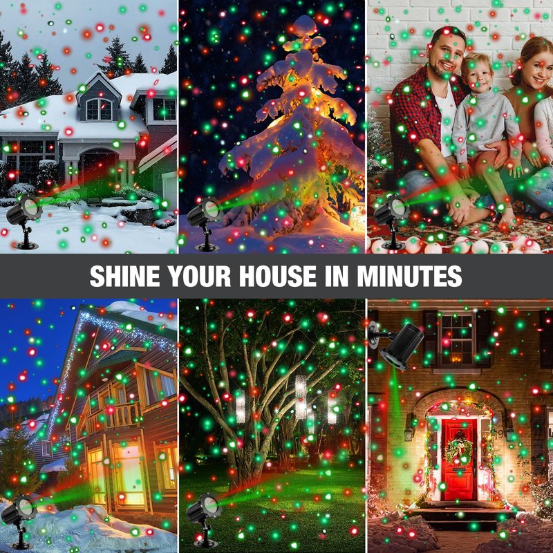 - Christmas Lights Outdoor Projectors: the Christmas light projector provides a larger projection angle, resulting in clearer and more even pattern displays, its decorative effect is absolutely fantastic, especially with the red and green stars that raise a sense of childhood dreams