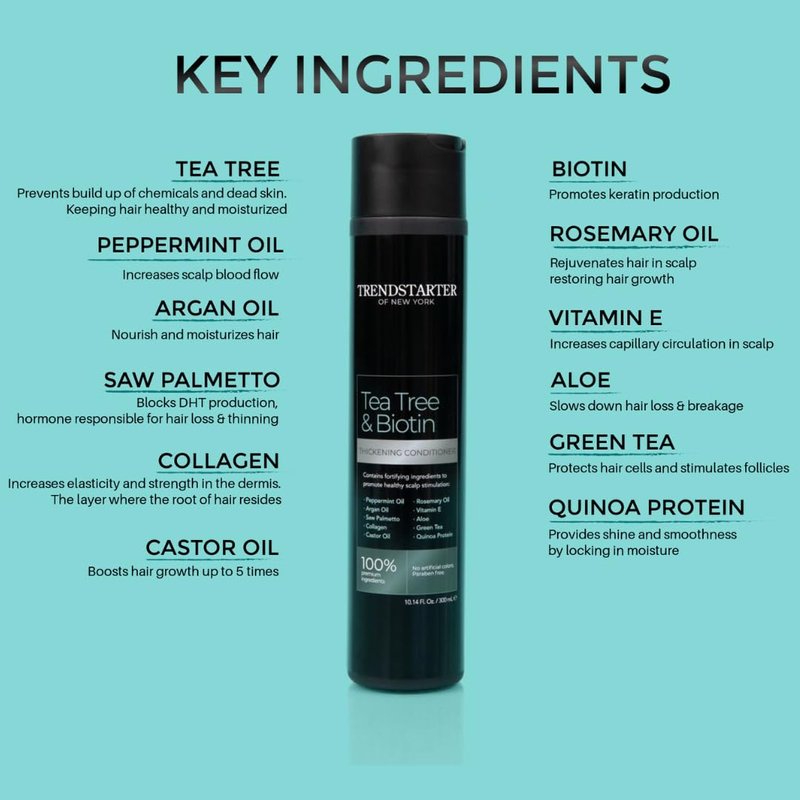 TRENDSTARTER - TEA TREE & BIOTIN THICKENING CONDITIONER (10.14Fl.Oz) - Argan Oil, Peppermint, Collagen, Quinoa, Aloe, Rosemary, Green Tea, and Saw Palmetto (DHT Blocker) - All-Day Nourishing Formula