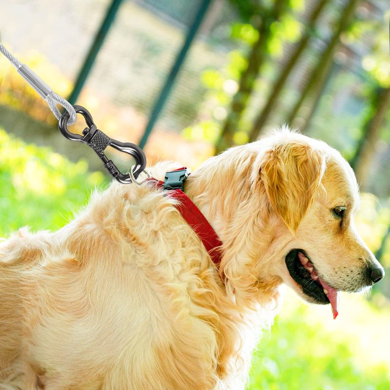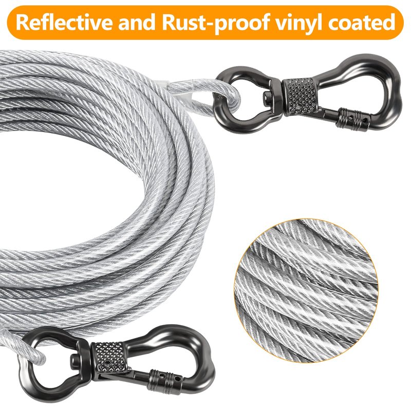 - 【Strong Anti-bite and Anti-rust Material】Made of steel and anti-rusty vinyl cover, it is strong and rustproof, so durable that even a dog's sharp teeth can't easily broken it. Use swivel eye hook to fix on the post or stake, the other end is connected to the collar.