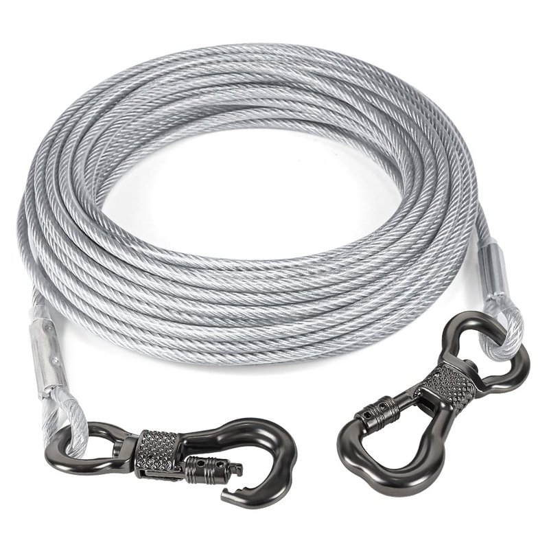 - 【Extra Strong】Tresbro dog leash wire cable is a heavy duty cable, made of stainless steel wire 5mm in diameter, double crimp for stronger ends, ultra strong and durable for dogs up to 250 lbs. All the cables have been rigorously quality tested, it can withstand up to 5KN of tensile force. Provide more space for free movement while ensuring its safety.